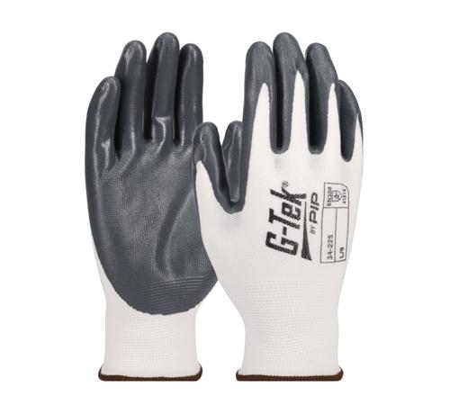 PIP G-Tek Economy Seamless Knit Nylon Glove w/ Nitrile Coated Smooth Grip on Palm & Fingers / White - Medium